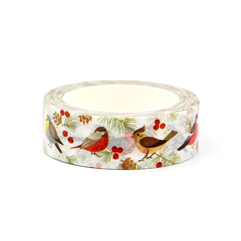 Washi tape de aves entre ramas y frutos del bosque entre el que destaca un cardenal rojo, presagio de cambios positivos y buenas noticias.