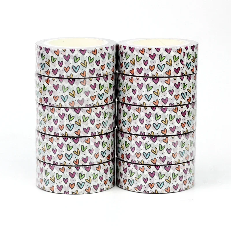 El toque festivo que tus notas necesitaban. El Washi Tape Lluvia de Amor es pura energía visual. A diferencia de los diseños de corazones tradicionales, este modelo apuesta por un estilo más artístico con bordes negros bien definidos y una paleta de colores que incluye naranjas, verdes, fucsias y azules. El fondo está decorado con pequeños puntos negros que le dan un aire de celebración constante.